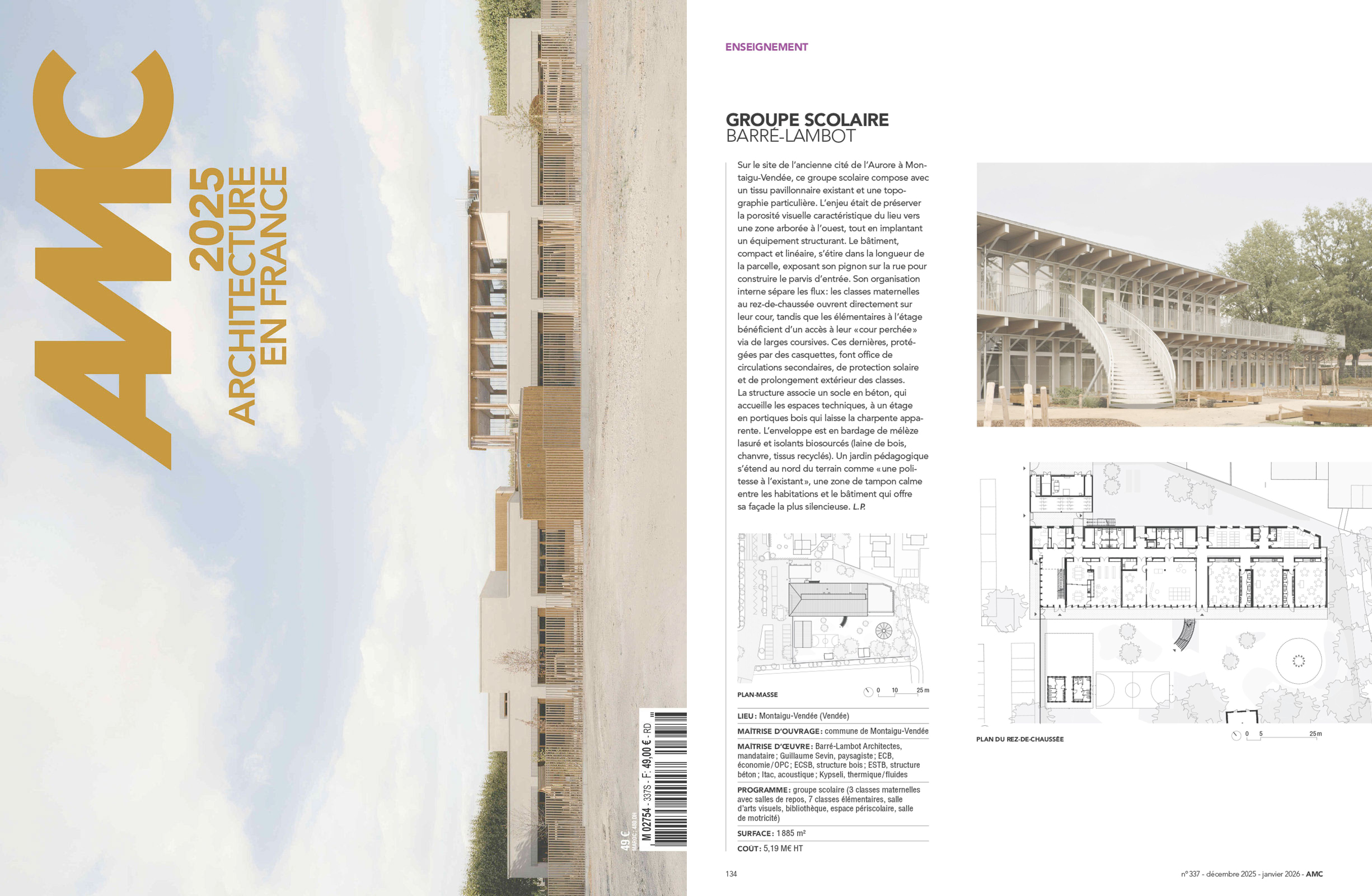 Le projet de l’École Jules verne est publié dans la revue AMC « Les 100 bâtiments de l’année 2025 », paru en Janvier 2025, dans la catégorie enseignement.