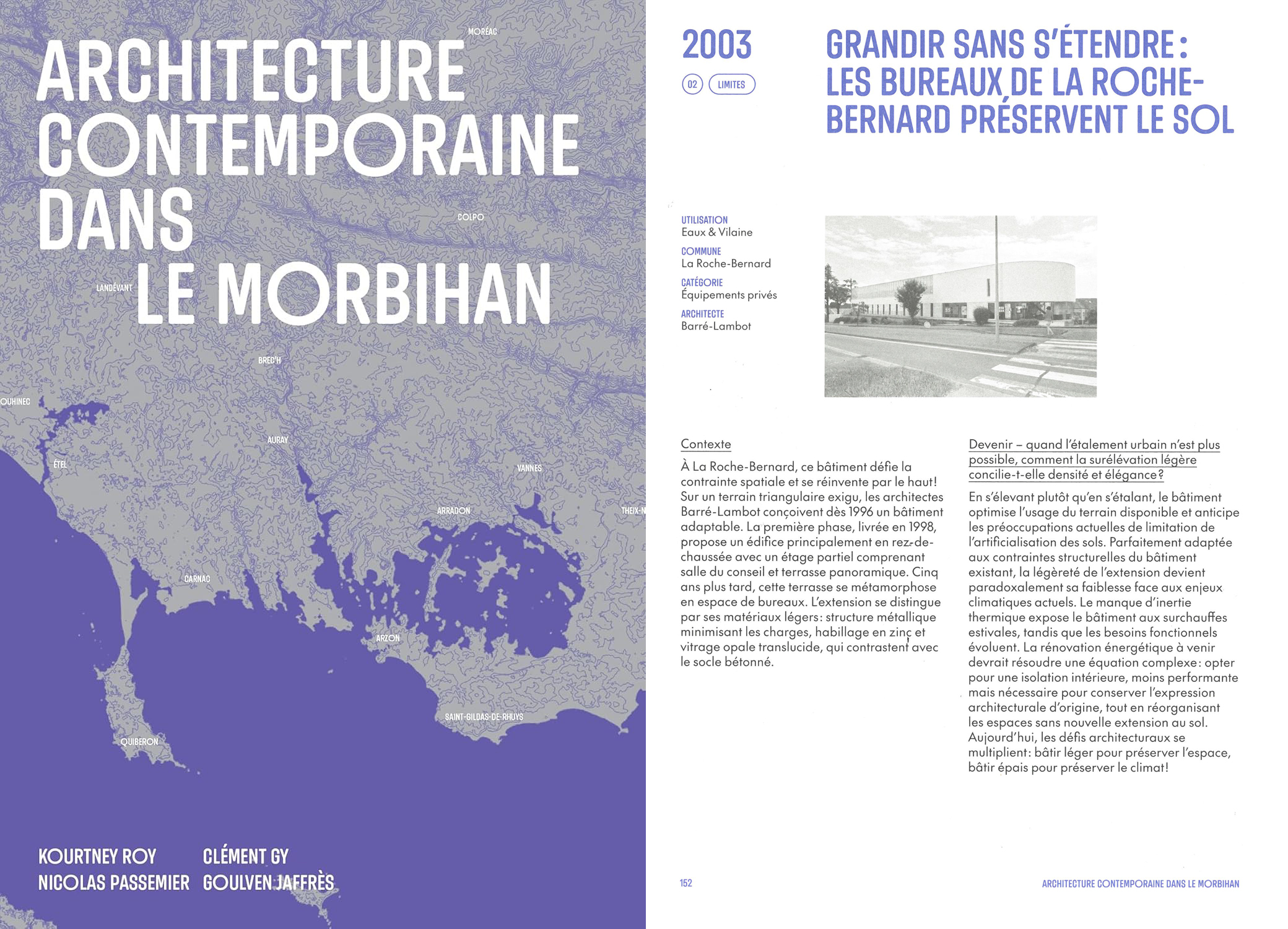 En savoir plusLe projet « I.A.V de la Vilaine » est paru dans le livre « Architecture contemporaine dans le Morbihan« , par Kourtney Roy, Clément Gy, Nicolas Passemier et Goulven Jaffrès en Août 2025, édité par Locus Solus.