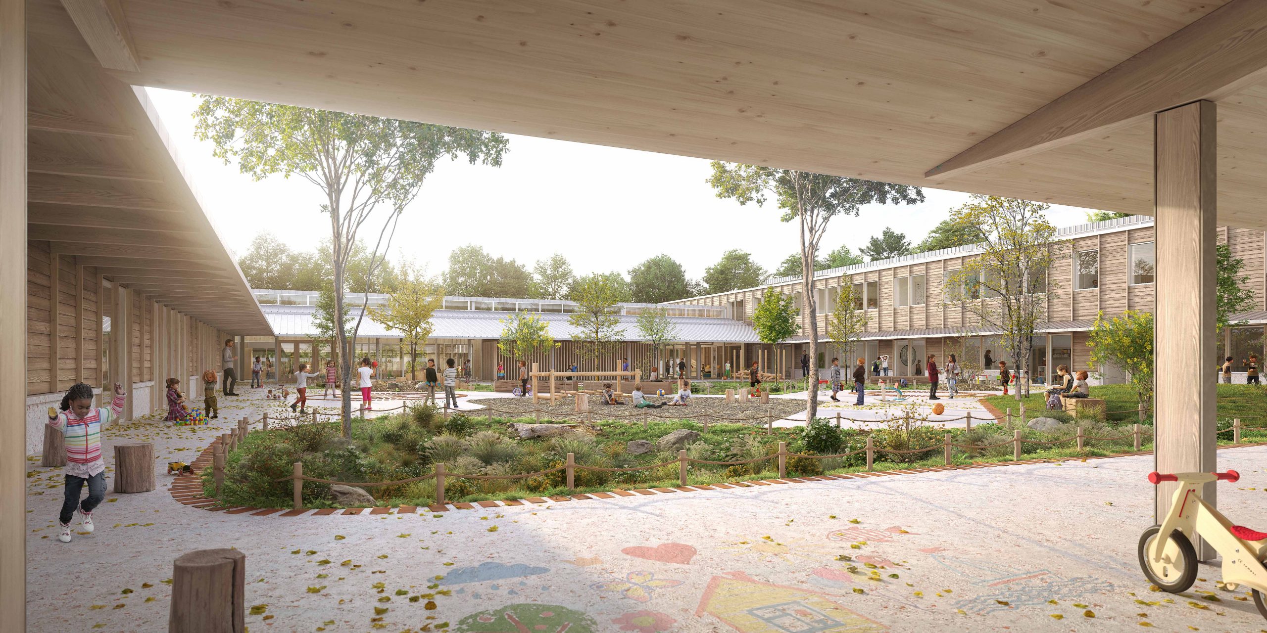 En savoir plusLe projet de l’agence Barré-Lambot est désigné lauréat du concours de maîtrise d’œuvre pour la reconstruction du groupe scolaire, périscolaire, accueil de loisirs et cuisine Centrale Louis Buton à Aizenay, avec l’agence DGA architectes (architectes associés). Perspectives: Johan Hugele