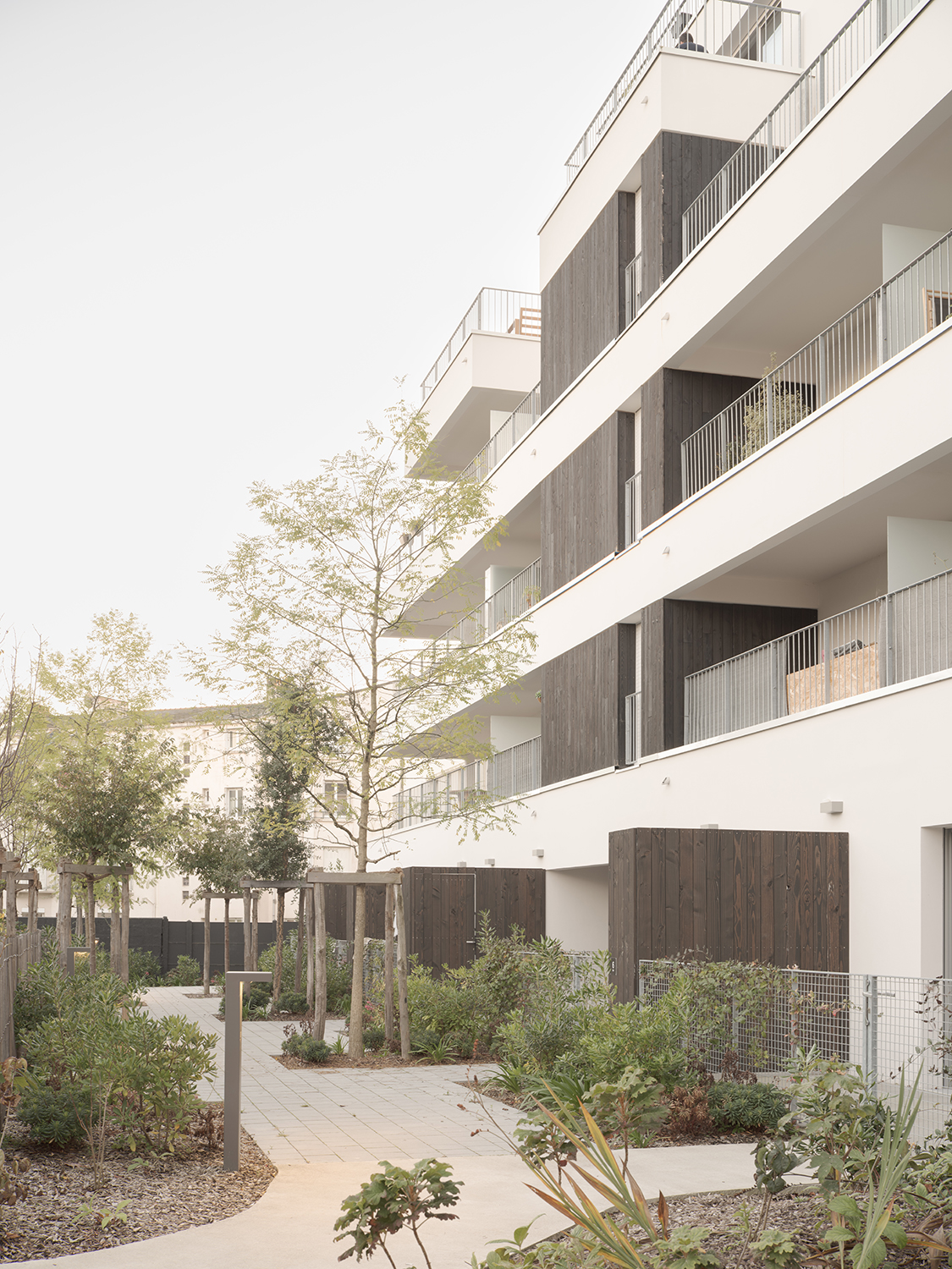 Programme : 50 logements collectifs et 5 maisons, Maître d’ouvrage : AETHICA/SILENE - 2023, Surface : 3470 m2, © Photos : Juan Cardona
