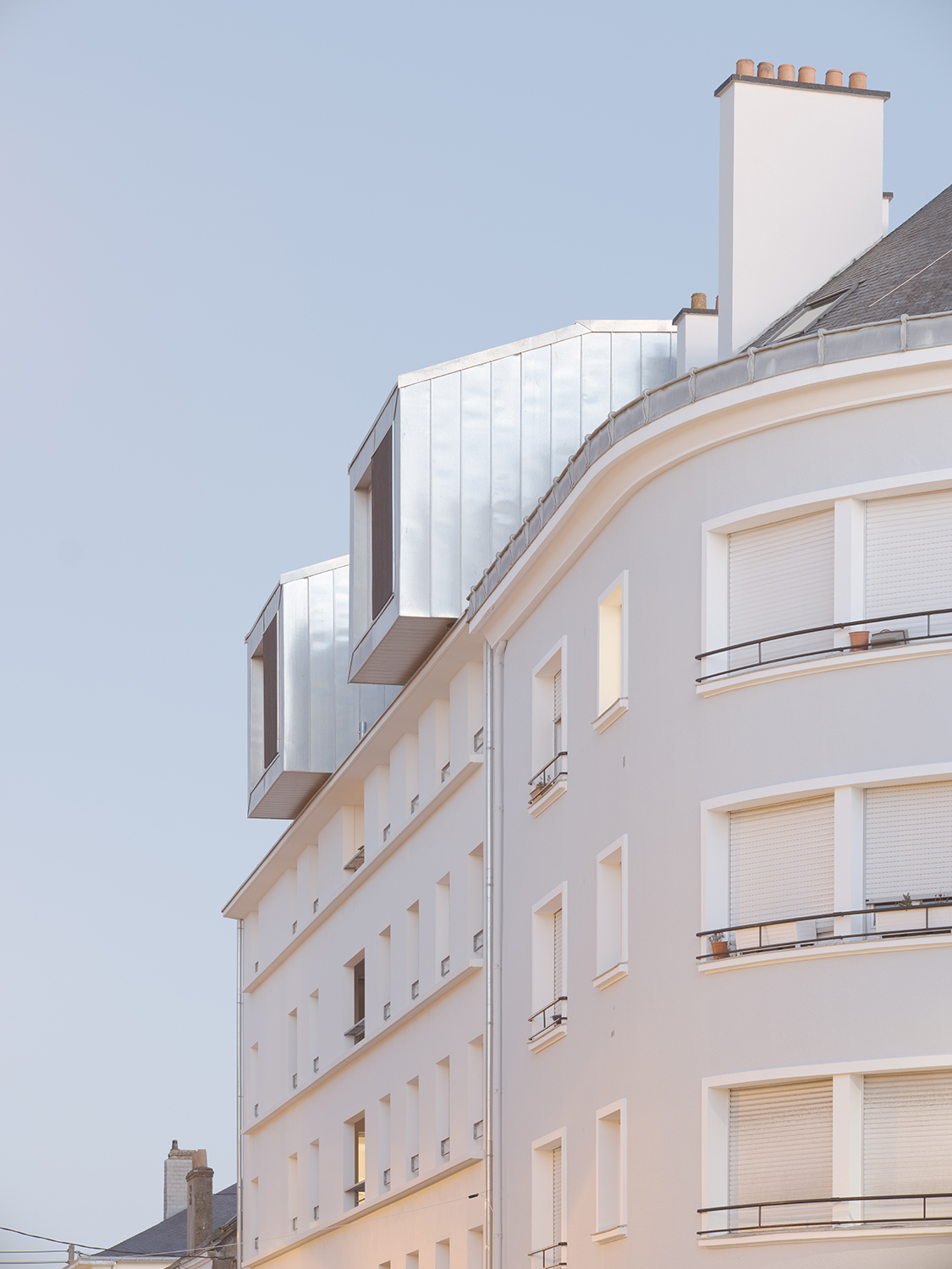 La restructuration et l’extension de la mairie de Chantenay ont pour objectif de créer un véritable pôle administratif et social à destination des habitants du quartier. Les nouveaux services administratifs s’installent dans deux ailes placées de part et d’autre de la mairie existante restructurée. Ces deux ailes, en retrait de la façade de la mairie, sont posées sur un socle de schiste constituant un soubassement continu en fond de place pour asseoir l’ensemble architectural. L’aile réservée aux services du département bénéficie d’une façade très visible depuis le boulevard, avec un hall public accompagné d’un large emmarchement. L’aile qui abrite les services de la communauté urbaine est placée en retrait de la rue de la Constitution. Le hall public instaure un dialogue frontal avec la place, laissant un jardin se développer au sud. Ces deux ailes se retournent, en fond de parcelle, en un bâtiment à rez-de-chaussée abritant les services généraux, avec un patio paysager qui offre à cet équipement un espace de calme, à l’abri des bruits de la ville. Chaque aile est composée de trois niveaux avec un rez- de-chaussée épais assurant la liaison avec la mairie dans la continuité du vestibule existant.