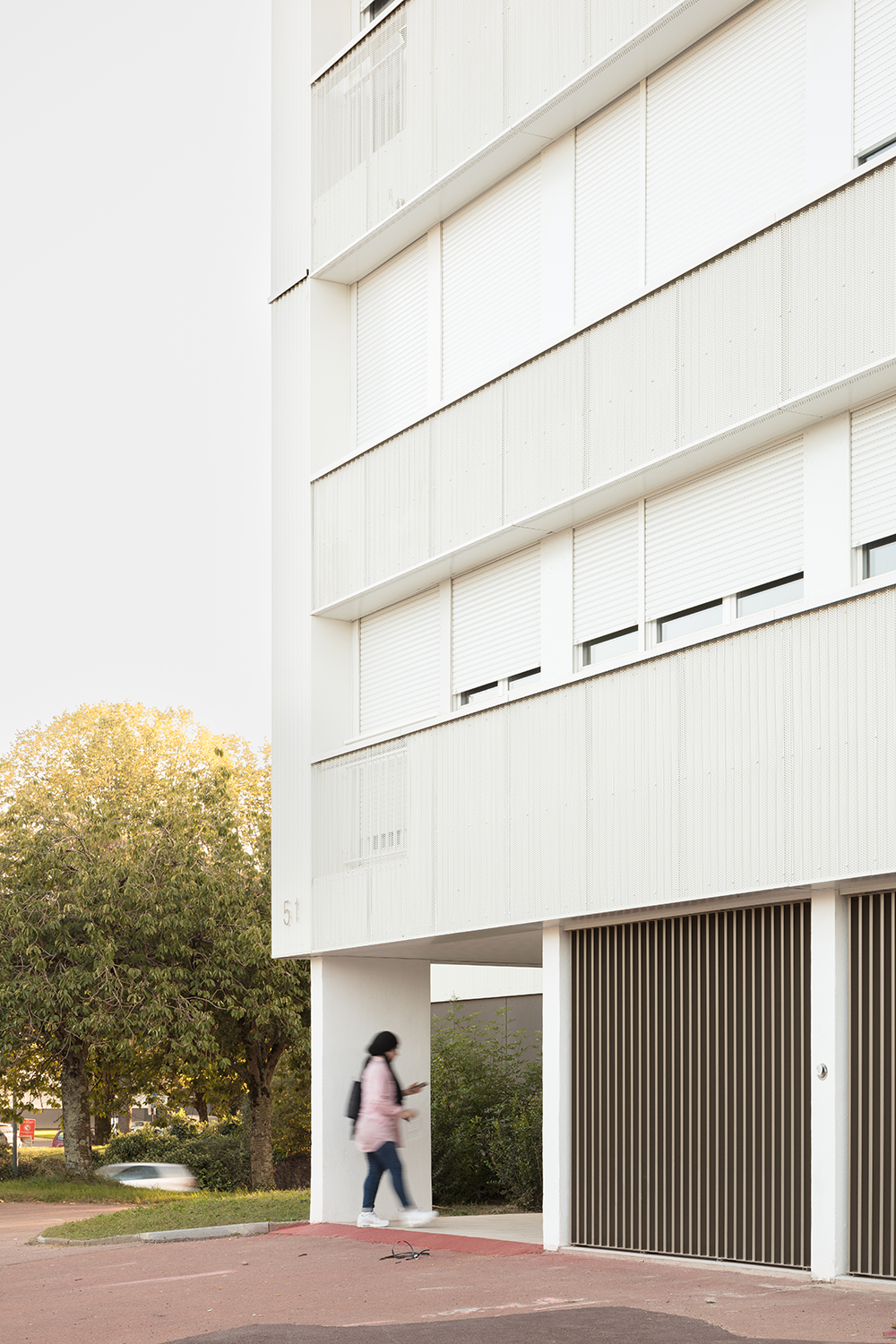 Programme : Réhabilitation d’une tour de 63 logements en site occupé, Maître d’ouvrage : Nantes Métropole Habitat, Période : 2021 - 2023, Surface : 4736m2, © Photos : Juan Cardona
